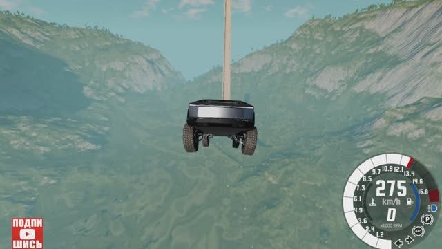 BeamNG Drive Спуск по рампе без тормозов на автомобиле! (Tesla CyberTruck) Мод патруль!