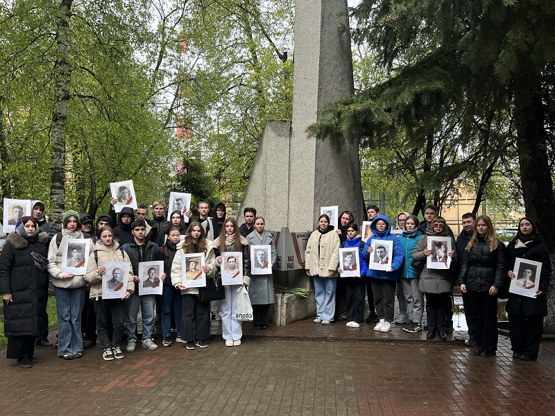 Студенты Колледжа ННГАСУ, представители студактива, сотрудники и преподаватели Нижегородского государственного архитектурно-строительного университета по традиции в памятные майские дни возложили цветы к памятнику гисийцам – участникам Великой Отечественной войны. Участники мероприятия принесли к мемориалу не только цветы, но и портреты студентов и преподавателей, погибших на фронтах той страшной войны. Проректор по учебной работе Алексей Александрович Гордин напомнил студентам о том, что более 300 студентов, преподавателей и сотрудников Горьковского инженерно-строительного института (как тогда назывался наш университет) ушли на фронт. На данный момент, благодаря поисковой работе, которая ведется в нашем университете известны имена более 80 человек, павших смертью храбрых в боях за Родину. Во дворе института 8 мая 1974 года, то есть ровно 50 лет назад, была воздвигнута Стела с их именами, около которой каждый год 1 сентября преподаватели встречают новых поступивших в университет студентов. Проректор по проектной деятельности Лихачева Светлана Юрьевна поблагодарила всех студентов, принявших и участие в акции, и отметила: «В семье каждого из россиян есть те, кто воевал на фронтах Великой Отечественной или героически трудился в тылу… Не забывайте их имена, их подвиг, чтобы в дальнейшем передать память о них своим детям». Также Светлана Юрьевна рассказала о том, что среди преподавателей нашего вуза были два Героя Советского Союза – Ю.В. Садовский и И.И. Шиянов, и два Героя Социалистического Труда – П.Г. Пронягин и Г.И. Степанов. На сайте ННГАСУ размещены книги «ГИСИ фронту и тылу» (https://nngasu.ru/about/history/frontu-i-tylu.php), в которой рассказывается о героических подвигах студентов и сотрудников нашего вуза. Поздравляем всех с наступающим праздником Великой Победы!