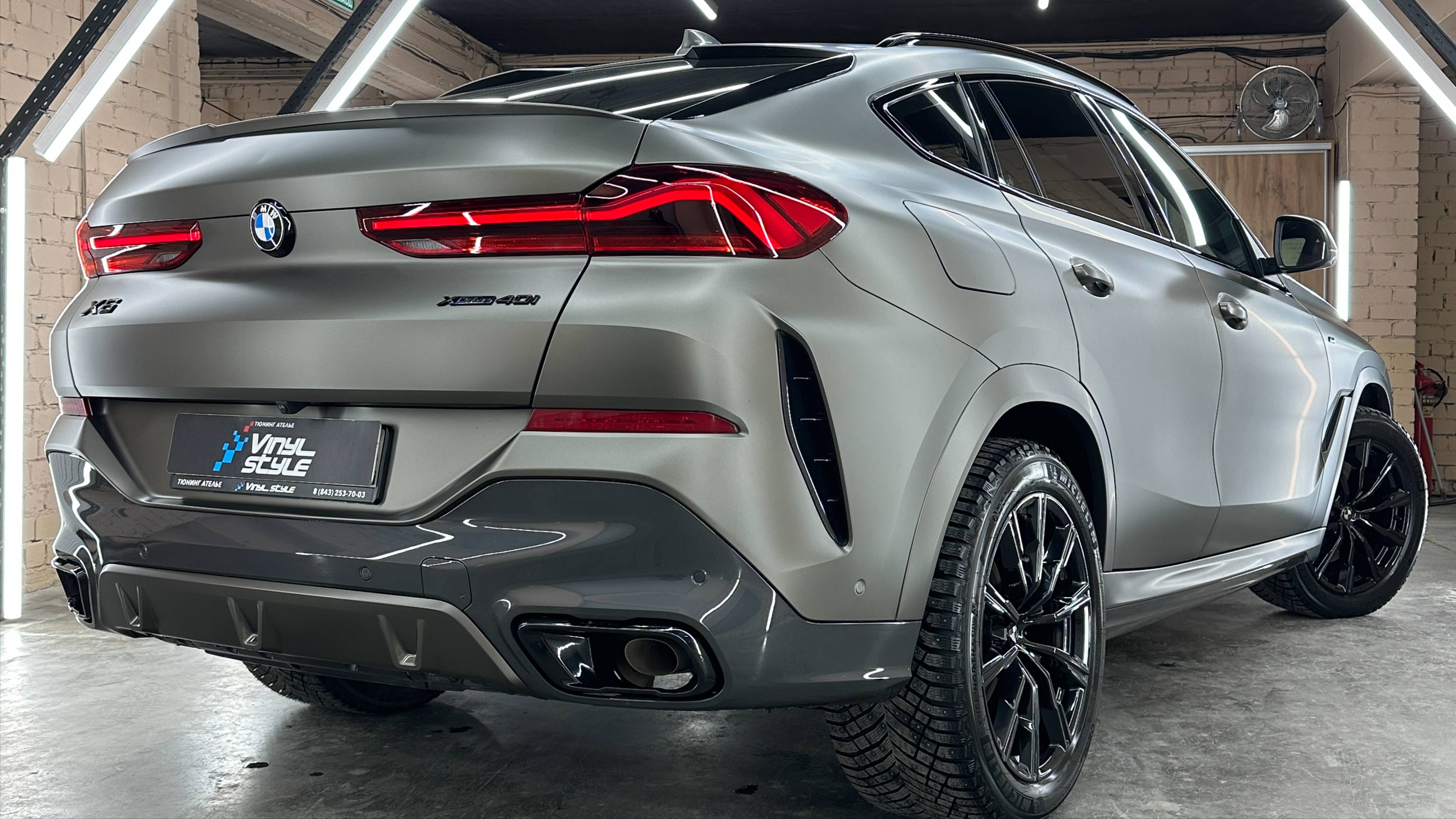 Тюнинг Ателье Vinyl Style в Казани https://vinylkazan.ru/ BMW X6 и ДО нашего преображения отличался уникальным внешним видом! Этот впечатляющий купе-кроссовер имеет под капотом 340 лс и разгоняется до сотни за 5.5 сек. Автомобиль, можно сказать, новый, пробег небольшой, по России не ездил. И самым правильным решением было загнать его СРАЗУ к нам в тюнинг ателье! Мы его русифицировали, установили сигнализацию, сделали полный антихром, пошили ковры, затонировали, забронировали мониторы, лобовое стекло и полностью оклеили авто матовым полиуретаном! Да! Внешний вид заметно изменился и стал еще больше подчеркивать этот спортивный силуэт!