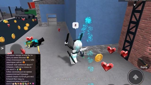 Колесников шоп мм2 - https://m.vk.com/kolesnikovshopmm2 Приветик, хочешь поиграть со мной? Тогда жми на кнопочку follow на моем профиле в роблоксе, ссылка ниже ☆ Для сотрудничества писать в теллеграм @esmierb ୨୧ я в роблокс - https://www.roblox.com/users/1337287685/profile ୨୧ группа в роблокс - https://www.roblox.com/groups/7406964/Maryka#!/about ୨୧ тг канал - https://t.me/esmierbb В моей группе в роблоксе (ссылочка сверху) появился мерч, так что заходите туда, оценивайте и покупайте, я надеюсь вам понравится ☆ Может тебе понравится^^: ୨୧ Трата 17,8к робуксов - https://youtu.be/8DX3jRdcQqM ୨୧ Видео с Василисой - https://youtu.be/psm-POoCYC8 ୨୧ Видео с Василисой и Кирой - https://youtu.be/78beeAyPKoU #mm2 #MurderMystery2 #ROBLOX Хорошего дня, не забудь поставить лайк!! ☆