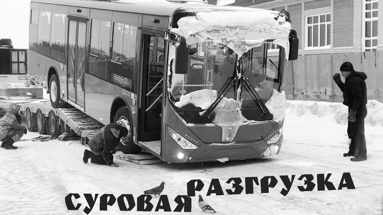 Суровая доставка и разгрузка автобуса ZhongTong 6105 в бескрайней Сибири.