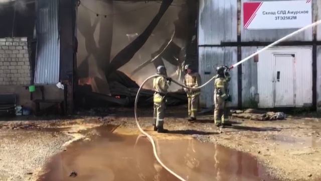 Подразделения пожарной охраны ликвидируют возгорание в складском помещении в Комсомольске