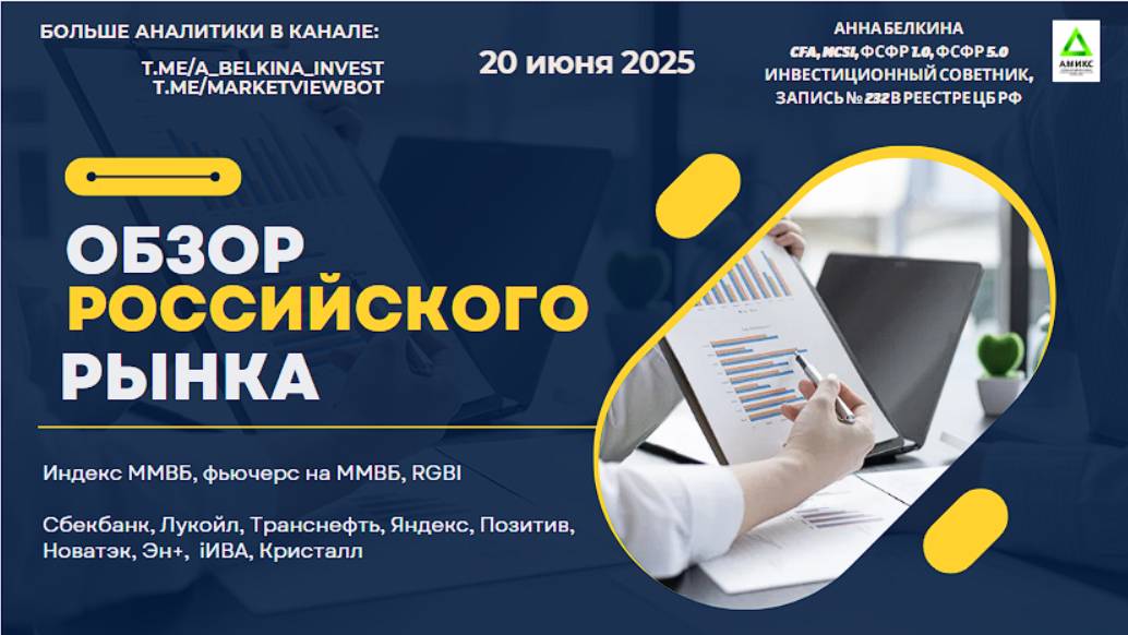 В обзоре посмотрим на текущее развитие движения на индексе ММВБ #IRUS, фьючерсе на индекс ММВБ - #MICEX; долговом рынке через индекс RGBI. По просьбам подписчиков в видео рассмотрены: Сбербанк #SBER Лукойл #LKOH Транснефть #TRNFP Яндекс #YDEX Позитив #POSI Эн+ #ENPG iИВА #IVAT Кристалл #KLVZ Больше разметок в открытом ТГ канале: t.me/a_belkina_invest Подписка на Закрытый канал: https://t.me/MarketViewBot Сайт: https://a-belkina-invest.ru/ Сертификаты: CFA и MCSI (от британского института CISI); ФСФР 1.0 и ФСФР 5.0. Инвестиционный Советник, запись № 232 в реестре ЦБ РФ. Контент имеет информативный характер и не является инвестиционной рекомендацией.