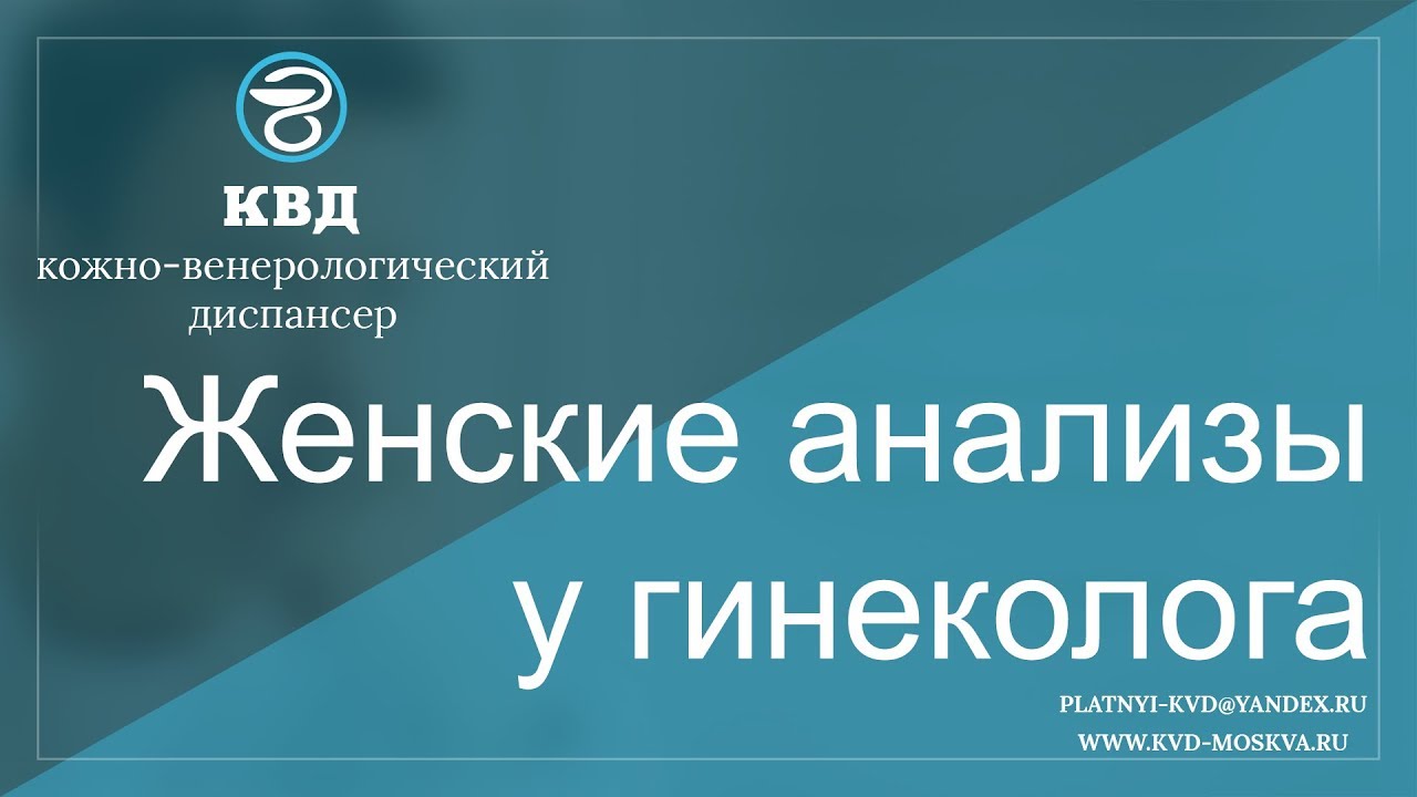 Женские анализы у гинеколога - это комплекс обследований по выявлению бактериальных, вирусных, протозойных и грибковых микроорганизмов, которые являются возбудителями венерических заболеваний. Подробнее - https://kvd-moskva.ru/analizy-na-infektsii/935/ Для подробной консультации по этому вопросу, обращайтесь в платный центр КВД-Москва. Наши телефоны: 8 (495) 642-30-37, 8 (495) 532-66-57 Наш e-mail: platnyi-kvd@yandex.ru Наш сайт: http://kvd-moskva.ru