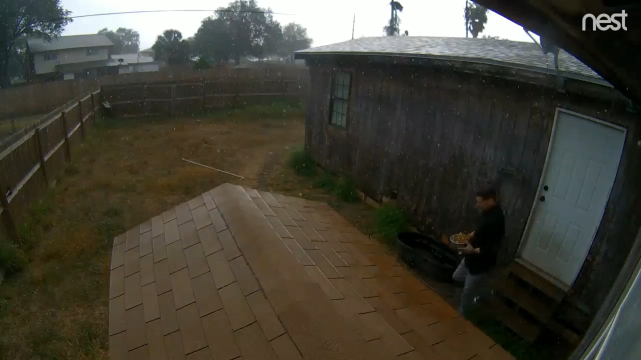 Парень хотел по-быстрому покормить собаку во время дождя, но когда заходил обратно в дом, подскользнулся и упал на крыльце. #дождь #падения #фейл #прикол