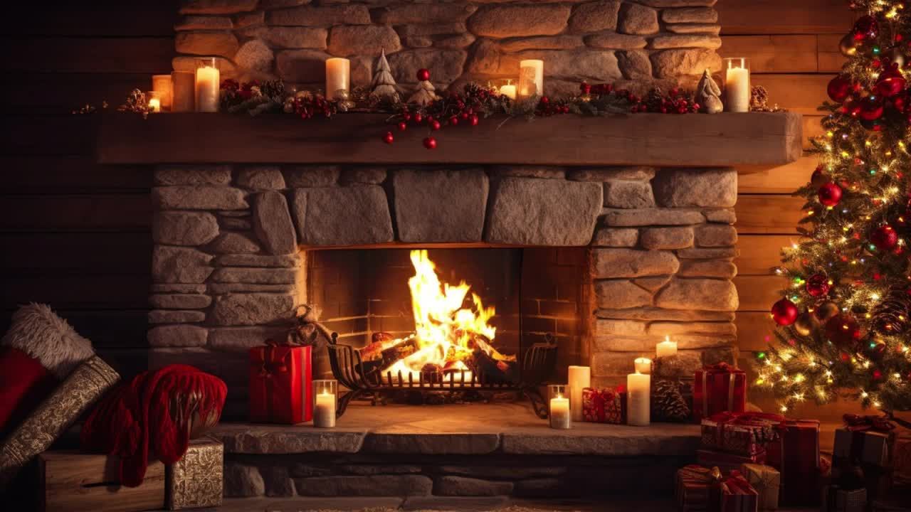 Уютная Рождественская атмосфера Камин с расслабляющей Фортепианной Джазовой Рождественской музыкой