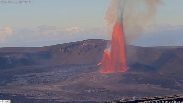 Фонтан лавы высотой более 200 метров на вулкане Килауэа.