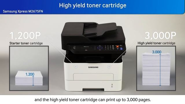 Samsung Xpress M2675FN starter toner allows you to print 1,200 pages against Brother MFC-7360N 700 pages