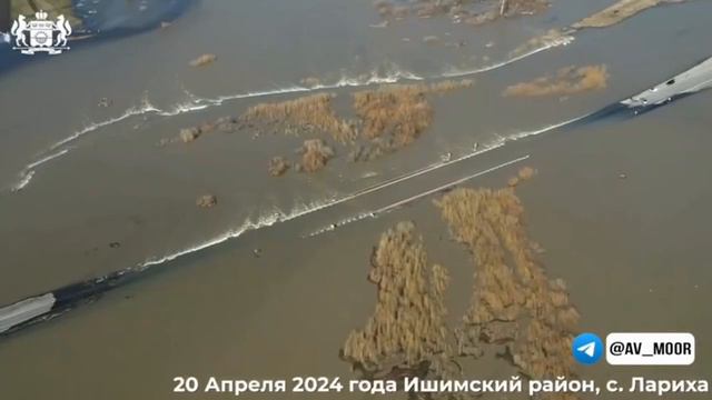 Кадры динамики разлива Ишима в районе села Лариха, снятые с дрона