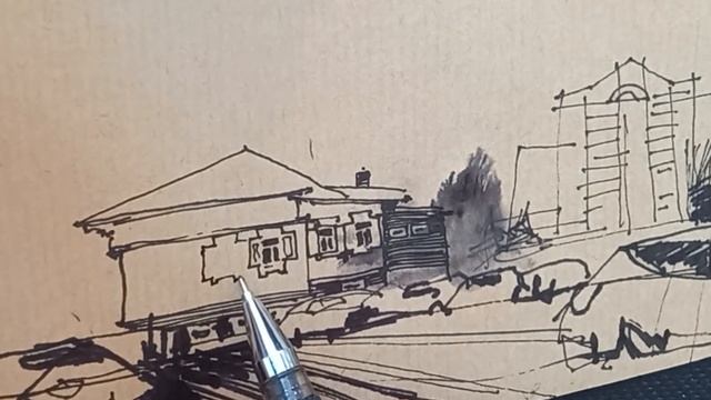 Городская зарисовка "Весна в Новом Городе старого Иркутска". Перо Мел Сангина Drawing in real time
