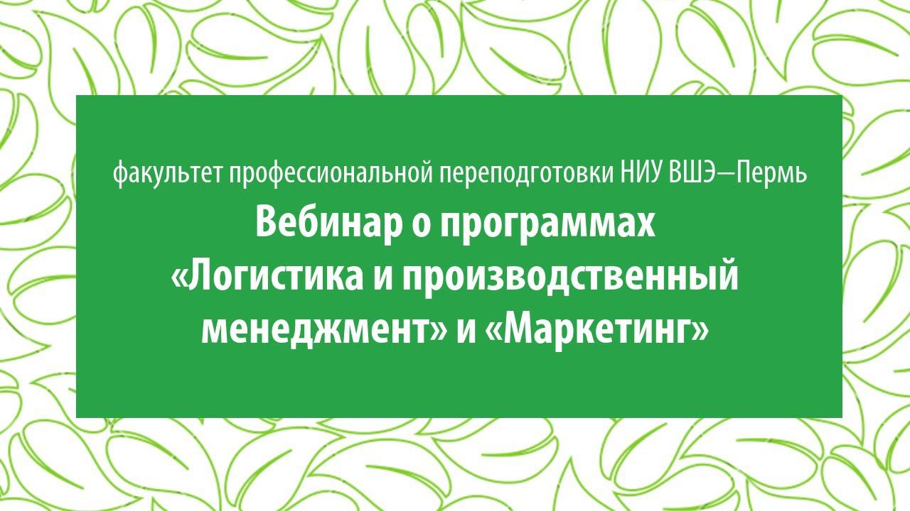 Вебинар о программах «Логистика и производственный менеджмент» и «Маркетинг» НИУ ВШЭ — Пермь
