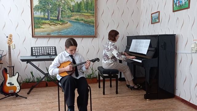 1. Русская народная песня " Вдоль да по речке ", обр.Ю.Давидовича. 2. О.Моисеева, Танцевальная фантазия на тему М.Качурбиной " Мишка с куклой танцуют...." Концертмейстер Чеботарева Оксана Николаевна.