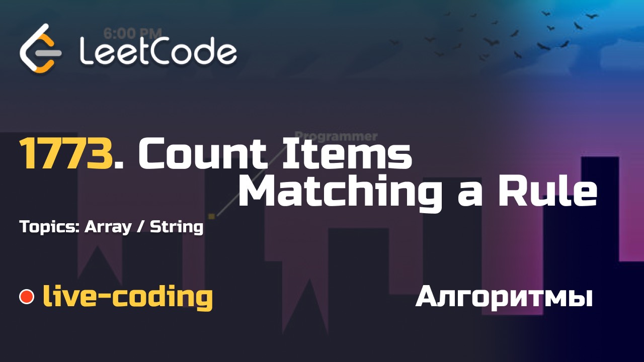 Курсы по алгоритмам: 1. Алгоритмы и структуры данных: курс для профессионалов: https://stepik.org/a/184350 (закрытое сообщество, регулярный разбор алгоритмических задач, активности) *** 2. Алгоритмы и структуры данных: ознакомительный курс: https://stepik.org/180830 *** Изучение Python: 1. Основы Python: курс для начинающих: https://stepik.org/course/174852 2. Основы Python: курс для продвинутых: https://stepik.org/a/186192 *** Сообщество в Telegram: https://t.me/analitiqtutor *** Полезные ссылки: 1773. Count Items Matching a Rule: https://leetcode.com/problems/count-items-matching-a-rule Code: https://github.com/blacksmithalex/leetcode/blob/main/Algorithms/easy/1773.%20Count%20Items%20Matching%20a%20Rule.py