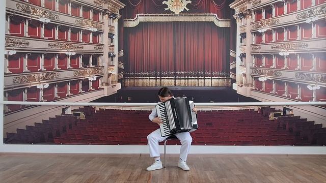 1.М.Глинка перел.Ю.Лихачёва Фуга(Es dur); 2.А.Астьер "Румынский аккордеон"; 3.А.Астьер транск.В.Ушакова"Вальс-арабеск"; 4.Концертная пьеса на тему М.Блантера "Черноглазая казачка".