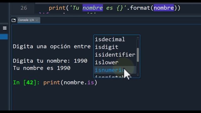 Aprende a CREAR MENÚS dentro de PYTHON y a usar MÉTODOS de STRINGS para identificar si la cadena de caracteres contiene datos numericos, alfabeticos, alfanuméricos, mayúsculas, minúsculas e inclusive métodos para encontrar caracteres determinados en un STR usando PYTHON. Todo eso en nuestro Tutorial de Python para Principiantes en Español, Un curso desde cero. Con este video sabrás como hacer menus en python todo explicado en detalle y en español, aprenderás a usar el método pass en python y también el método find de los str de python para desarrollar una lógica de programación usando Python. ? *Descargar códigos* : https://bit.ly/390oZxB ? Curso de Python : http://bit.ly/CAE_Python ? Curso de MicroPython: http://bit.ly/u_Python ? Curso de Matlab : http://bit.ly/2Fks7XN ? Curso Simulink : https://bit.ly/3a0W8Xr ? ¿Quieres ser un experto? http://bit.ly/2RVvxne ⏱ MARCAS DE TIEMPO ⏱ 00:00 Menús con Python 01:16 Condicionales en Python 02:30 Comentários en Python 03:44 Menú en Python (Formulario) 06:04 Validar las opciones del formulario 08:16 comando pass en Python 10:40 Programar la opción 1 12:49 métodos 'is' en las str en Python 18:40 Programar la opción 2 21:12 Programar la opción 3 22:39 método find #Python #Menus #Strings ★SÍGUEME EN MIS OTRAS REDES★ ►Curso SIMULINK: https://bit.ly/3a0W8Xr ►Sitio WEB: https://controlautomaticoeducacion.com/ ►¿Quieres Beneficios? https://bit.ly/2YvGEqK ►Instagram: https://www.instagram.com/sergio.castano.cae/ ►Twitter: https://twitter.com/ConAutEdu ►Facebook: https://www.facebook.com/controlautomaticoeducacion/ _________________________________________________________________ Te ha servido esta información y quieres que siga aportando más contenido gratuito y de calidad. Podrias invitarme un Café y ayudarme a seguir pagando los servidores del sitio web. ? Invitar un Café a Sergio: http://bit.ly/2VqAdSX ☕️☕️☕️ __________________________________________________________________