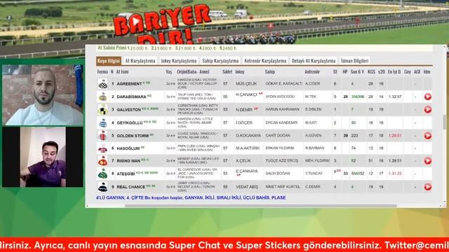 Kanalımıza destek olmak için KATIL'ın; https://www.youtube.com/channel/UCPFtGDPa6BkaJJJpvmQazIA/join Destekleri için https://www.istinyeganyan.com ailesine teşekkürler. Haftanın bazı günleri canlı yayın olarak gerçekleştirdiğimiz Bariyer Dibi programımızda, birbirinden değerli yarış yorumcularının günün koşuları ile ilgili detaylı yorumlarına, tahmin ve şablonlarına erişebilirsiniz. Soru ve mesajlarınız ile canlı yayına katılabilirsiniz. At Yarışı Tahminleri, Altılı Ganyan, Bariyer Dibi, Cemil Taşkale, #CemilTaşkaleTV, #AtYarışıTahminleri, İstanbul, Ankara, İzmir, Bursa, Adana, Kocaeli, Şanlıurfa, Diyarbakır, Elazığ, Kutlu Güzalan, Yasin Taşçı, Barış Göksu, Semih Canlı, Ümit Gürgan, Emre Keskin, Umut Öztürk, Mustafa Şencan, Ersöz Ersever, Ferhat Pusa, TJK, Türkiye Jokey Kulübü, Yedili Plase, 7'li Plase, #AltılıGanyanTahminleri, Birinci Altılı Ganyan, 1. 6'lı Ganyan, İkinci Altılı Ganyan, 2. 6'lı Ganyan, Beşli Ganyan, 5'li Ganyan, Dörtlü Ganyan, 4'lü Ganyan, Üçlü Ganyan, 3'lü Ganyan, Çifte Bahis, İkili Bahis, 2'li Bahis, Ganyan, Banko, Plase, Sürpriz, Bomba, Bomba Atlar, Galop, Sprint, Jokey, Apranti, Halis Karataş, Ahmet Çelik, Gökhan Kocakaya, Bold Pilot, Long Runner, Call To Victory, Start, Beyaz Bayrak, Beyaz Bayrak Ayna, Koşu, Yorum, Tahmin, Değerlendirme, Röportaj, Tevzi, At Yarışları, İstanbul Veliefendi Hipodromu, Ankara 75. Yıl Hipodromu, İzmir Şirinyer Hipodromu, Bursa Osmangazi Hipodromu, Adana Yeşiloba Hipodomu, Kocaeli Kartepe Hipodromu, Şanlıurfa Hipodromu, Diyarbakır Hipodromu, Elazığ Hipodromu, Sonuç, At Yarışı Sonuçları, At Yarışı Tahminleri, Cemil Taşkale TV, 16 Kasım 2021 Salı.