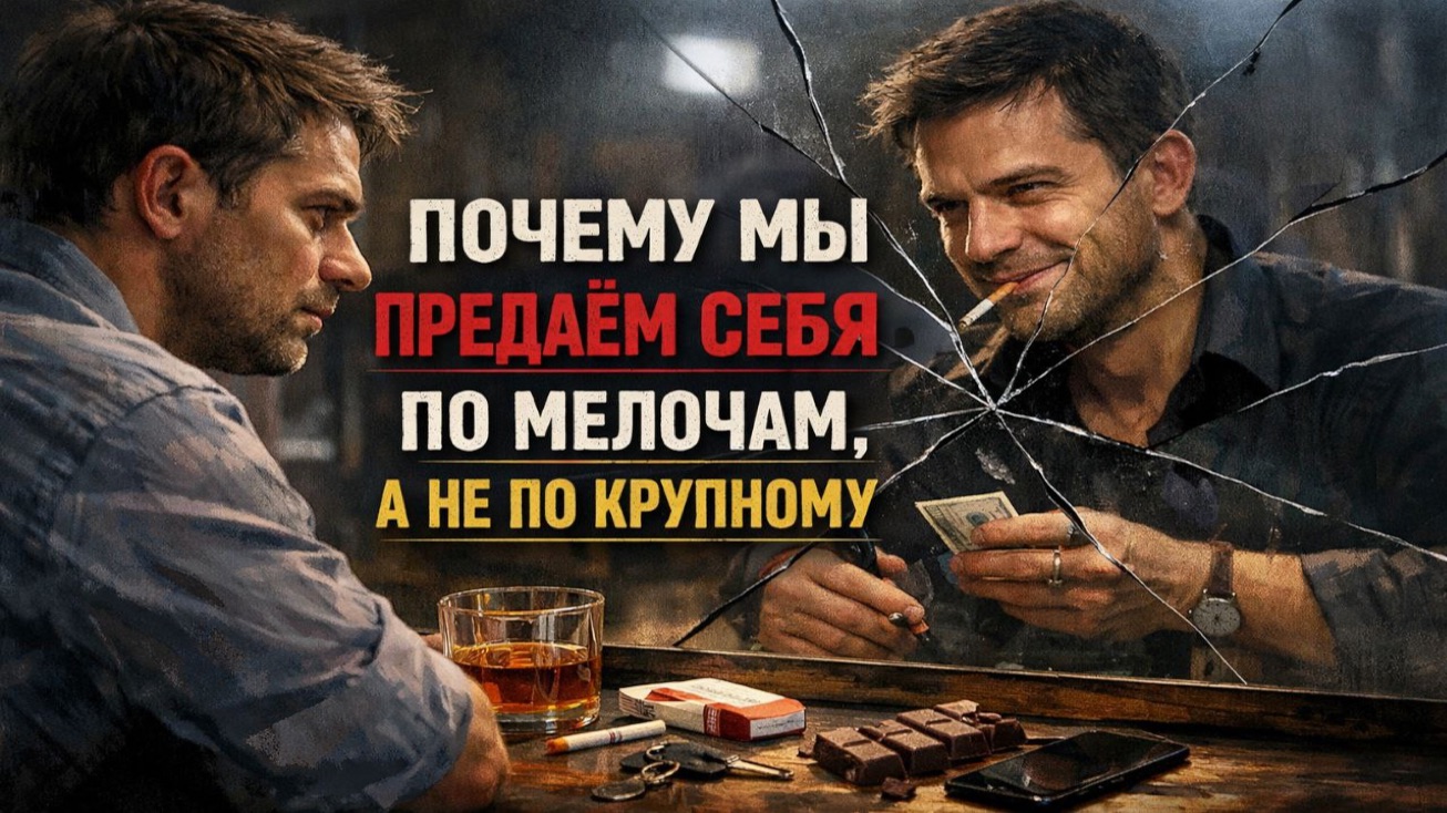 ПОЧЕМУ МЫ ПРЕДАЁМ СЕБЯ ПО МЕЛОЧАМ, А НЕ ПО КРУПНОМУ Большие предательства - редкость. Маленькие - ежедневная рутина. Мы не нарушаем свои принципы сразу. Мы делаем это по чуть-чуть, микродозами, чтобы не было больно. Не сказал правду - "да ладно, мелочь". Согласился на неудобное - "ну разок можно". Поступил против себя - "ничего же страшного". Mikhail Clay