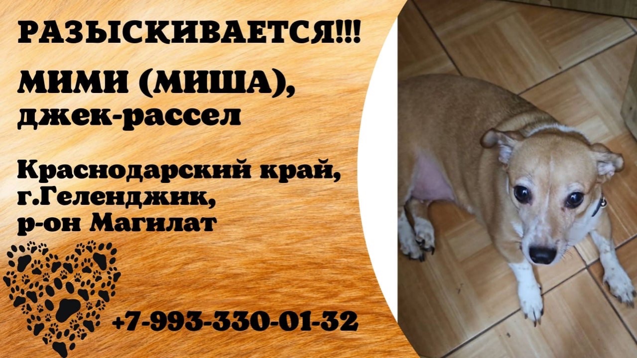 Краснодарский Геленджик Пропала собака 30.12 Похожа на джек-рассела МИМИ (МИША), с маленькими ножками. На ножках окрас будто белые сапожки, поведение может быть агрессивное, может гавкать и т. Д. район Магилат Имя хозяина: Илья Телефон: 79933300132 Адрес: Цветочная улица, 10 Инфо: https://vk.ru/wall-198815410_215537 #пропала_собака #краснодарский #геленджик