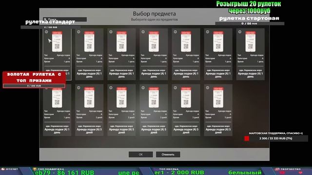 Поддержка донатом https://new.donatepay.ru/@1032463 Альтернативный донат https://www.donationalerts.com/r/kalyamba11 5536913964533059 карта Тинькоф Если стрим лагает,смотри стрим на трово https://trovo.live/s/Kalyamba_na_Ribalke Мой ВК - https://vk.com/kalyantv НИК в игре kalyan11 НАШ ДИСКОРД СЕРВЕР https://discord.gg/4ZzSQkQtsK Заказ водоема на 1 час - 500р ( весь стрим 2500р ) Модерка на канале 1200р ( каждая следующая на 100р больше) Озвучка доната на 40р,50р,100р,200р,300р,500р,1000р ✅Призы в рулетке "ЗОЛОТАЯ" ✔ ЗОЛОТО ✔ ПРЕМ ✔ КАТУШКИ РАПТОР 40, АЗИМУТ 10000, СИЛЬВЕР 80, ТАЙГА с 30 ✔ ПАЛКИ ПИЛКЕРНАЯ, ДОНКА МОРСКИЕ, ✔ РОД ПОД, СТУЛЬЯ ✅Призы в рулетке СТАНДАРТ : ✔ катушка "РАПТОР 40" ✔ катушка "АЗИМУТ 10000" ✔ катушка "ТАЙГА С30, С40," ✔ катушки 60 для медного ( ЭВИИ, НАТОРЫ, ГОЛДА, и тд) ✔ ПИЛКЕРНОЕ УДИЛИЩЕ КОРОЛЕВА ОКЕАНА ✔ Морское Донное удилище ✔ прем ( 3, 7, 30 дней) ✔ золото ( 1, 3, 5, 10, 20 ,50) ✔ билет на море ( 1, 3, 5 дней) ✔ голд наживка и др. ✅Призы в рулетке "СТАРТОВАЯ" ✔ катушка "silver80" ✔ катушка "БЕЛЫЙ КАЛИБР" ✔ катушка "Черный калибр" ✔ катушка "Протон" ✔ катушка "Нарга 6000" ✔ Набор Фидерист и спинингист ✔ Карповик Фортуна ✔ фидерные удилища ✔ прем, золото, алкашка, наживки и тд P.s Рулетка это не казино, а награда за поддержку стримера. Вечный ТОП ПОДДЕРЖКИ (11.05.2024) 1. Dimon_pokemonchik 119 784 2. Interceptor 75 508 3. Skreb79 71 261 4. une personne 68 619 5. Нарвал77 31 550