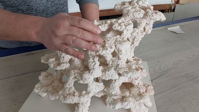 Декорация с габаритными размерами 40х27х31см, по изделию выполнено 34 отверстия под ножку плашки ( плашками не комплектуется) Данная декорация выполнена в максимально приближенном варианте к природным СРК или ЖК, а в частности её формы и фактура. Поверхностные поры данного изделия все открыты, что значительно улучшает проток воды через тело самой декорации. Отлично подойдёт как центральный элемент скейпа для средних аквариумов, а так же как составной модуль для формирования скейпа в большие аквариумы.