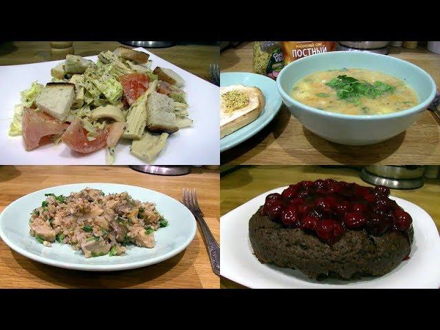 Постный обед салат, суп, каша и пирог