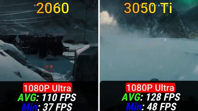 Infographic statistics tests NVIDIA RTX 2060 vs RTX 3050 Ti in Games 1080p Ultra Benchmarks Games : Cyberpunk 2077 - 0:00 Call of Duty Back Ops Cold War - 0:22 Battlefield 5 - 0:44 Assassin's Creed Valhalla - 1:06 Far Cry (New Dawn) - 1:28 Information in this video can be changed according to time