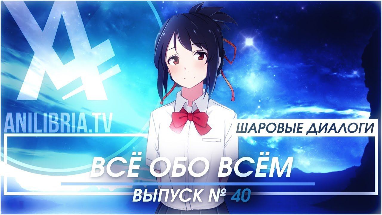 Шаровые Диалоги (Выпуск 40) ★★★ https://vk.com/anilibria ★★★ (Группа проекта) ★★ https://vk.com/sharonvoice ★★ (Моя группа) ШАРОВЫЕ ТАЙМКОДЫ: 00:00 Наступила осень, а выпусков все не было... 00:24 Новое место записи звука 00:35 Предупреждение 00:43: СЕГОДНЯ В ВЫПУСКЕ 01:11 40Й ЮБИЛЕЙНЫЙ 02:30 Мод озвучки Бесконечного лета https://steamcommunity.com/sharedfiles/filedetails/?id=1113598743 03:45 НАС УЖЕ 100К!!! (108*) 04:19 Рейкензан 2 04:25 Лучший ТОП-10 04:53 Анилибрия озвучит Тетрадь смерти??? 05:15 Переозвучка САО https://www.anilibria.tv/release/sword-art-online-i.html 05:40 Оваримоногатари 2 на Анилибрии 06:13 Фильм SAO - Ordinal Scale задержится? 06:39 Созданный в бездне (Аниме не для детей) https://www.anilibria.tv/release/made-in-abyss.html https://www.youtube.com/watch?v=HmzIY3LZ4XM 07:32 Завершение 08:00 А.С.Есенин 'Все живое особой метой'