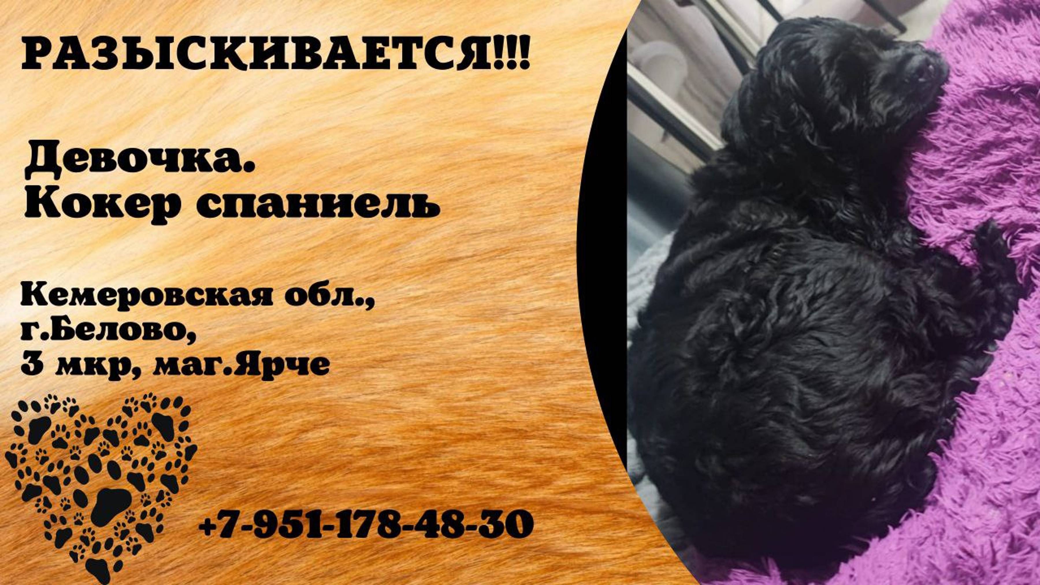 Пропала собака!Девочка. Кокер спаниель. Кемеровская обл, г. Белово
