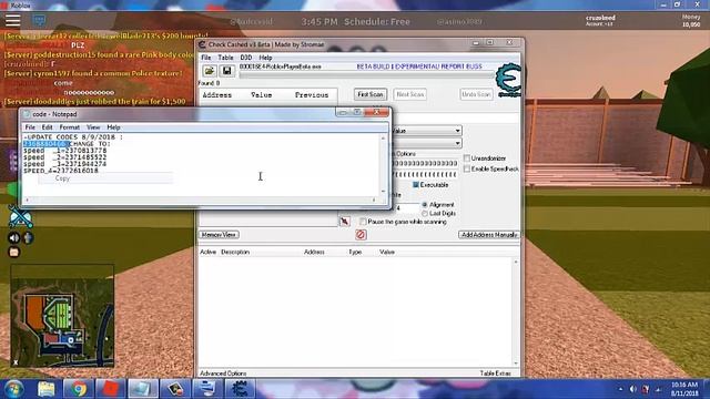 Hi Guys Today im going to Show You The Brand New Speed hack In Roblox Steps : Check Cashed Link: http://www.mediafire.com/file/bh7siem... -UPDATE CODES 7/26/2018 : 832035455 CHANGE TO: speed _1=837442175 speed _2=838605439 speed _3=835000959 SPEED_4=835639935 -UPDATE CODES 8/3/2018 : 209532204 CHANGE TO: speed _1=201372972 speed _2=202831148 speed _3=204469548 SPEED_4=203699500 -UPDATE CODES 8/9/2018 : 2368880466 CHANGE TO: speed _1=2370813778 speed _2=2371485522 speed _3=2371944274 SPEED_4=2372616018 Follow My Roblox Acc https://www.roblox.com/users/582527619/profile Subscribe My Channel :-) Thx For Watching :-) 1- OPEN CCV3 OR BYPASS CE 2- PUT THE FIRST CODE 3- WHEN THE CODES APPEAR PRESS CTRL+A 4- BRING ALL CODES THEN CLICK THE RED ARROW 5- SELECT ALL CODES AGAIN PRESS CTRL+A 6- PRESS ENTER THEN PUT THE SECOND CODES,PRESS OK!!