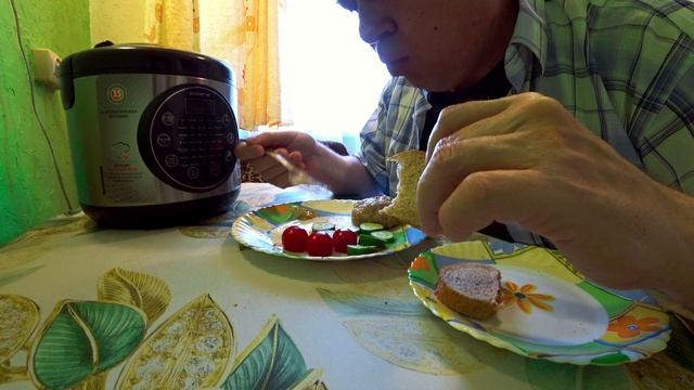 Куриные котлеты, помидоры черри и огурцы. Мукбанг.