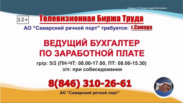 ТЕЛЕВИЗИОННАЯ БИРЖА ТРУДА – это слайдовая программа по трудоустройству, где голосом озвучивается ВАКАНСИЯ и ТЕЛЕФОН прямого работодателя. ТЕЛЕВИЗИОННАЯ БИРЖА ТРУДА выходит в ОНЛАЙН-КИНОТЕАТРАХ и на сайтах телеканалов в г. Самара и Самарская область