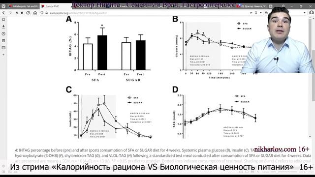 Почему высокожировая (кето) диета вредит пациентам в исследованиях. Проводим расследование исследования, что насыщенные жиры вреднее сахара (видео https://www.youtube.com/watch?v=IC12zhgb_BI). На самом деле исследовался рацион питания углеводами и насыщенными жирами при высоком содержании как углеводов, так и жиров. В результате инсулин и так высокий, а углеводы вызывали дополнительный выброс инсулина после приема пищи и повышение сахара крови. При этом давали человеку съедать много жира. На фоне высокого инсулина тело не расходует жиры. Жиры накапливаются в печени, под кожей, и как висцеральный жир на внутренних органах. В результате – ожирение печени, жировое перерождение печени, и усиление инсулинорезистентности. Инсулинорезистентность подстёгивает поджелудочную железу, она усиливает выработку инсулина – инсулин крови повышается. При дальнейшем повышении инсулина на фоне инсулинорезистентности падает уровень сахара крови. Всё физиологически закономерно. Так что исследовалась не диета с повышенным содержанием жиров, а диета с повышенным содержанием жиров и углеводов. Налицо явный обман, что кето диета якобы приводит к ожирению печени. #ЖирыУглеводы #ЖирыСахар #ИнсулинСахарКрови #ПеченьОжирение #КетоДиета ⭐️ Обучающие материалы - https://academy.nikharlov.com ✅ Консультации с доктором Никитой https://nikharlov.com/consult/ 🏆 Магазин дока https://academy.nikharlov.com/ 🔥 СЫТНЫЙ способ похудения https://bit.ly/satietyFD1 📕 Методика отбора продуктов: ПОДАРОК для друзей канала https://bit.ly/shopping-guide-1-0 🥇 Поддержать канал и получить ещё больше полезных знаний: https://bit.ly/JoinDrNik 🏆Выразить благодарность! https://nikharlov.com/podderzkha/ ▶️ Полная версия подкаста/стрима: Калорийность рациона VS Биологическая ценность питания https://www.youtube.com/watch?v=piJ9O51AcM0 ⛓ Плейлист: Калорийность рациона VS Биологическая ценность питания ⭐️ Полезные статьи в телеграм https://bit.ly/TG-fat 🌎 Сайт Доктор Ник https://nikharlov.com/ ❗️ Инста https://bit.ly/instan1k ФБ https://bit.ly/FB-group0 ВК https://bit.ly/VK-group0 https://www.youtube.com/watch?v=P6qK3IWMMe4