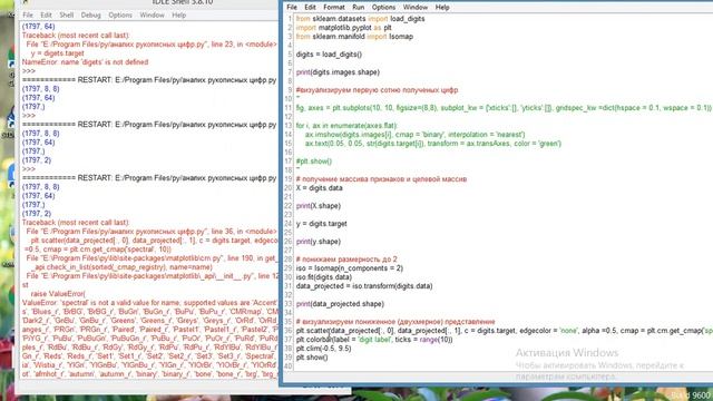 На примере распознания рукописных цифр приводятся методы МО и визуализации данных.
