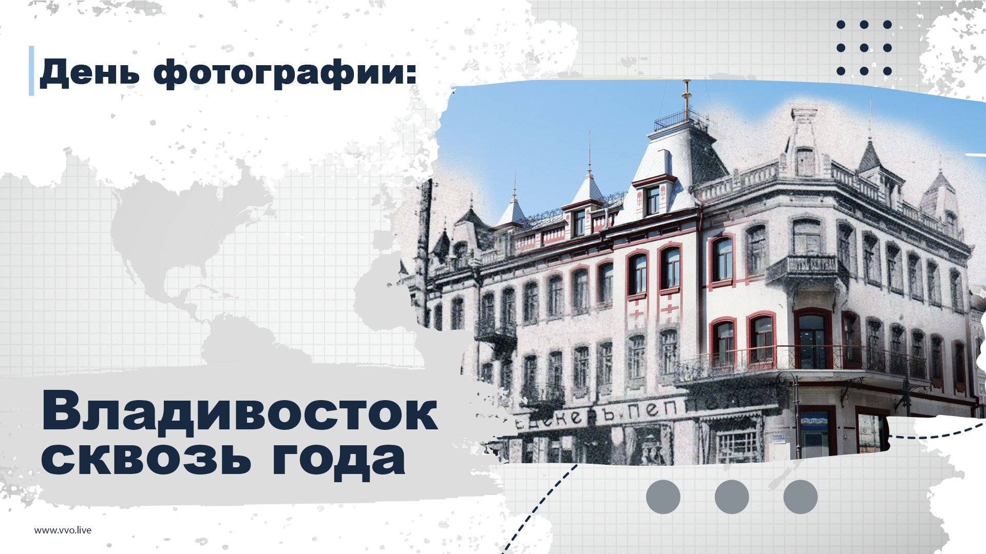 19 августа весь мир празднует День фотографии. Для каждого человека фото несет разный посыл. Кто-то с помощью фото старается запечатлеть момент, кто-то делает фото искусством, а «Вечерний Владивосток» решил взглянуть сквозь призму времени, посмотреть на родной город сквозь года с помощью фотографии и рассказать о достопримечательностях Владивостоке через эксклюзивные кадры! Оставь свой комментарий, подпишись на наш канал и включи уведомления, чтобы не пропустить новые видео! «Вечерний Владивосток»: Официальный сайт — https://vvo.live/ ВКонтакте — https://vk.com/vvo.live Telegram — https://t.me/vvolife Oдноклассники — https://ok.ru/vvo.live