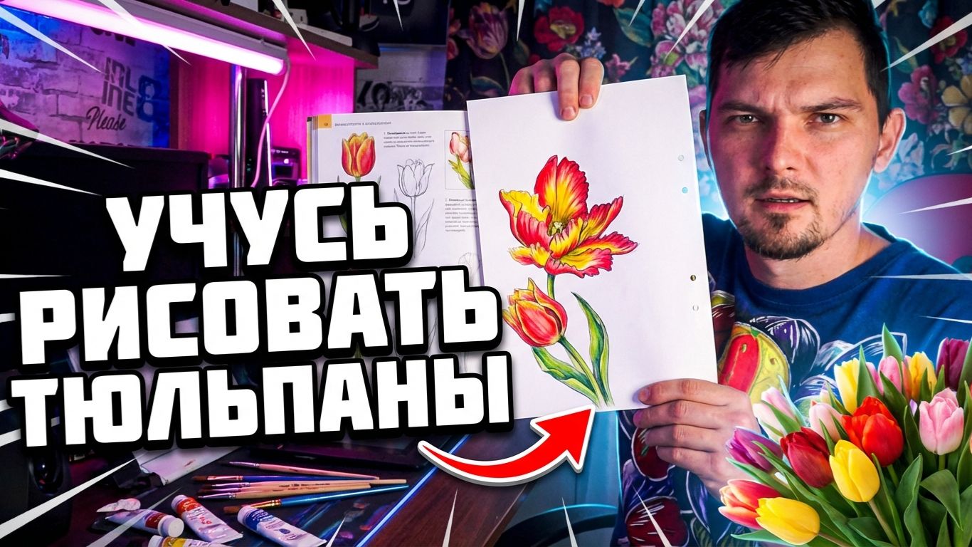 Это пятый видос в котором я пытаюсь научиться рисовать по книжке. В этот раз я пытаюсь нарисовать тюльпан вроде не так уж трудно , но есть ньюансы.