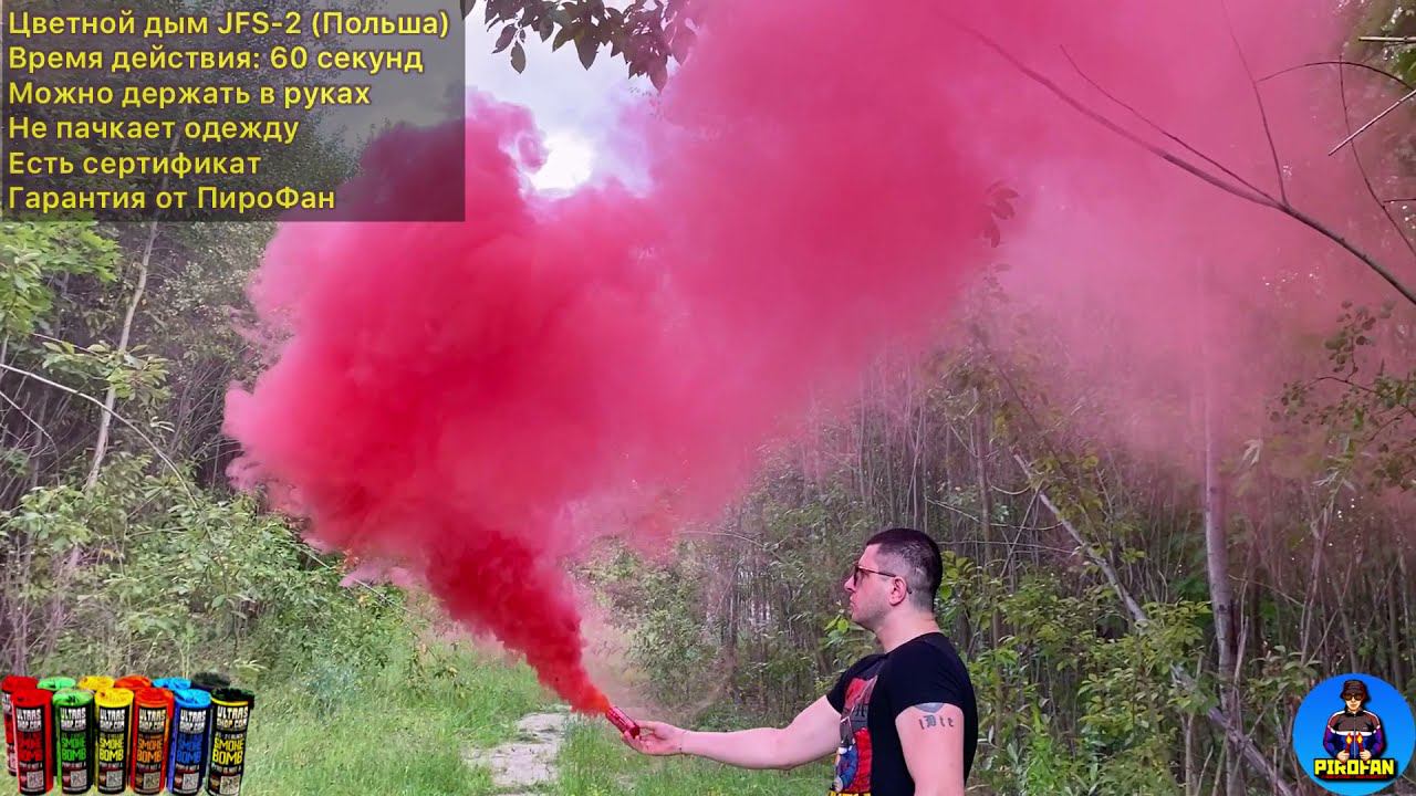 https://vk.com/PiroFan - наш официальный магазин Цветной дым Jfs-2 Smokе Bomb от Ultras Shop (Польша) - Тип: самый мощный из ручных - Время работы: 60 секунд - Можно держать в руках, не пачкает одежду - Активация: поджечь фитиль - Есть сертификат и гарантия от ПироФан