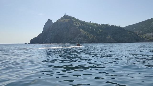 Надувная лодка (Резинка) летит на всех порах по Черному морю.