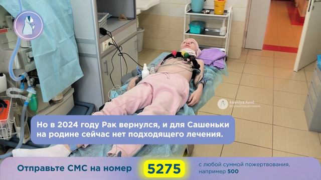 Это история тяжёлых болезней и одной надежды. У Сашеньки больное сердце, Синдром Вильямса и Рак. Семья держится за жизнь Саши изо всех сил. Но без Вас болезнь не преодолеть! Саша может просто однажды не проснуться! Спасите! Александра Куприянова, 10 лет, Москва. Диагноз: Острый лимфобластный лейкоз (РАК крови). Необходимо: Лечение и ТКМ в Hadassan Medical Center (Израиль). Сумма сбора: 3 660 000 рублей. Страница ребенка на сайте фонда: https://kseniya.fund/komu-pomoch/aleksandra-kupriyanova/?FAND=rutube В 2 года по пороку сердца врачи поставили Саше диагноз – Синдром Вильямса. А в октябре 2021 года у неё обнаружили Острый Лимфобластный лейкоз. Чередой пошли пункции, уколы, рвота, боли во всем теле, высокое давление, истерики, переливания крови, осложнения в виде галлюцинаций, Саша даже перестала ходить. Но сильная девочка вышла в ремиссию. Весь 2022 год Сашу лечили дома таблетками, делали анализы, уколы химии и пункции каждую неделю. Лечение шло 1 год и 3 месяца, с дополнением иммунотерапией, ведь у девочки больное сердце. 2023 принёс облегчение. Казалось, болезнь отступила. Только в марте 2024 года у Саши выросла температура, заболело плечо, опухла десна, начались приступы мучительной боли в костях, скачки давления. Семья была в полном отчаянии, когда пункция показала рецидив. Предстояли блоки высокодозной химии. Из-за высокой кардиотоксичности лечения родители стали искать спасения в других странах. Доступнее всего оказался Израиль. Но у семьи нет таких огромных средств! Помогите оплатить лечение! "Мы держимся и боремся за жизнь изо всех наших сил. Но без Вашей поддержки спасти нашу доченьку мы просто не в силах. Мы переживаем огромное горе. Жизнь и спасение нашей доченьки совсем рядом, но сейчас оно нам недоступно из-за огромной стоимости. Мы молим вас о помощи и поддержке!" Мама. Спасите Саше жизнь! Выберите удобный способ пожертвования у нас на сайте: https://kseniya.fund/komu-pomoch/aleksandra-kupriyanova/?FAND=rutube Отправьте СМС: - на номер 3434 со словами «Лечим Александру» и любой суммой. Пример: Лечим Лечим Александру 300 - на номер 5275 и с любой суммой пожертвования. Пример: 300 Банковские реквизиты: Получатель платежа: Благотворительный фонд «Ксения Спасает Жизни» ИНН 7814779325 КПП 781401001 ОГРН 1207800101497 ПАО «Сбербанк» Р/с 40701810755000000688 Банк: Северо-Западный банк ПАО Сбербанк БИК: 044030653 К/с 30101810500000000653 Назначение платежа: Благотворительное пожертвование для Александры Куприяновой. #александракуприянова #лейкоз #ракуходи #детимосква #доченька #спаситесашу #моядевочка #солнышко #ксенияспасаетжизни