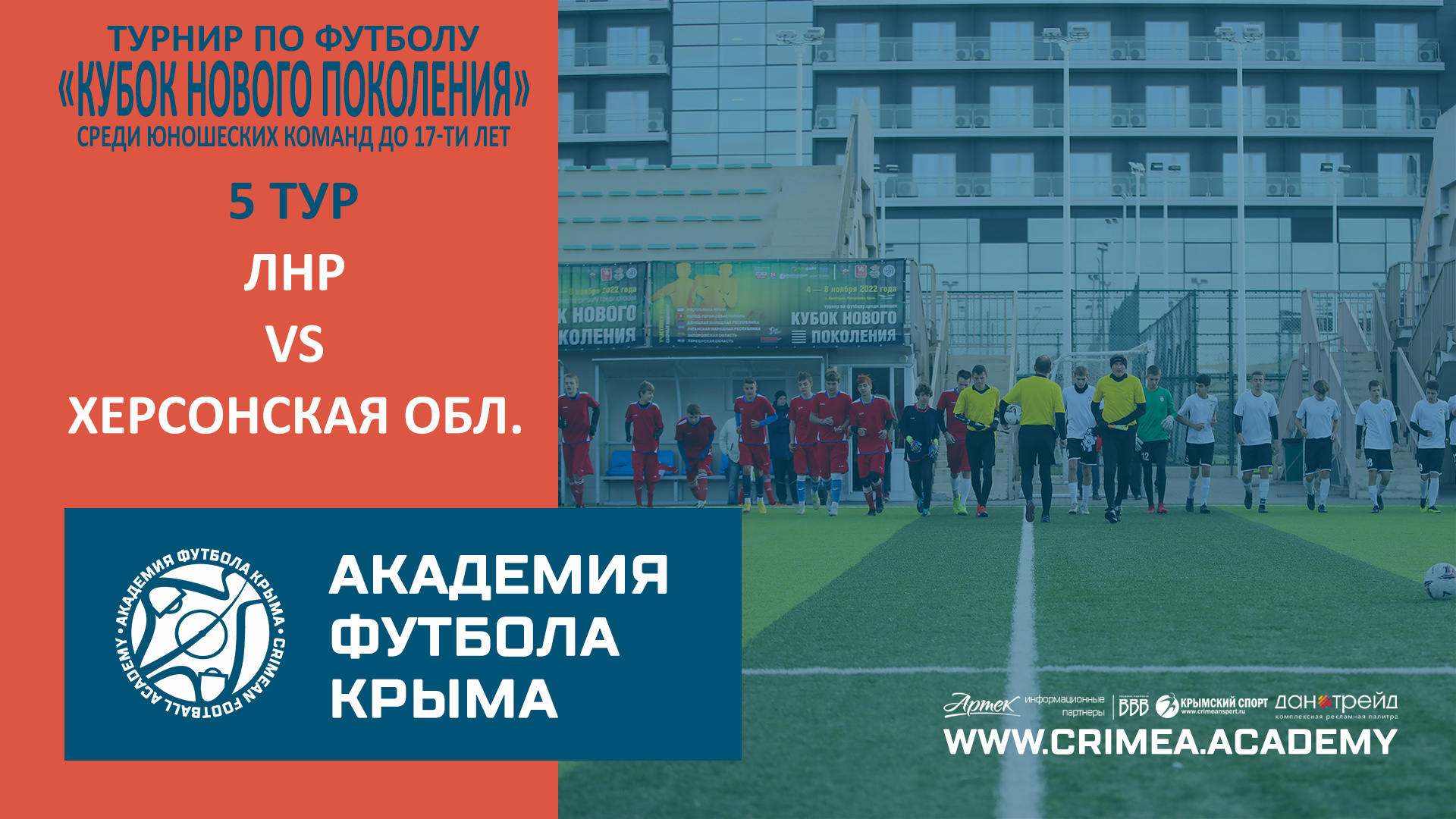 Матч пятого тура футбольного турнира среди юношей не старше 17-ти лет "Кубок нового поколения": Луганская Народная Республика - Херсонская область Наш сайт: https://www.crimea.academy/ Академия футбола Крыма – это большая футбольная семья, которая открыта для общественности и готова к взаимному сотрудничеству, обмену опытом и профессиональному общению. Наша цель – подготовка качественных и конкурентоспособных футболистов с учетом современных требований, а также образованных и всесторонне развитых членов современного общества. Наша приоритетная задача – отбор детей, проявивших выдающиеся способности в области футбола для совершенствования их спортивного мастерства. Команды Академии ориентированы на атакующий и зрелищный футбол, в котором удовольствие получает не только сам игрок, но и зритель. При этом интересы команды не должны идти в ущерб задаче воспитания отдельного футболиста. В основе воспитания юных футболистов в нашей Академии лежит принцип – "подготовка игрока, а не команды". #футбол #спорт #СвернёмГоры #football #soccer #sport