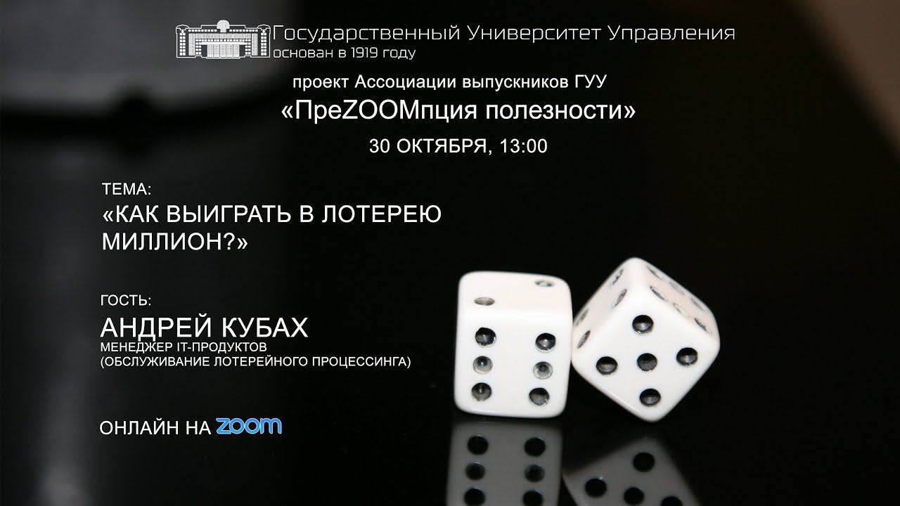 В минувшую пятницу состоялся очередной выпуск «ПреZOOMпции полезности», а уже сегодня онлайн-лекция на тему: "Как выиграть в лотерею миллион?" может посмотреть любой желающий на нашем официальном канале в YouTube. На этот раз спикером выступил Андрей Кубах — выпускник ГУУ, менеджер IT-Продуктов (обслуживание лотерейного процессинга). В этом выпуске поговорили с гостем об исторических аспектах лотереи, законодательстве, регулирующем эту сферу деятельности, о том, как устроен лотерейный процессинг и что это такое? А также Андрей рассказал, как устроен в России лотерейный бизнес и реально ли выиграть крупную сумму без «знакомых».