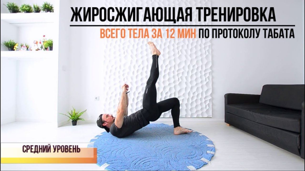 Круговая тренировка на все группы мышц. 12 минутная жиросжигающая тренировка среднего уровня.