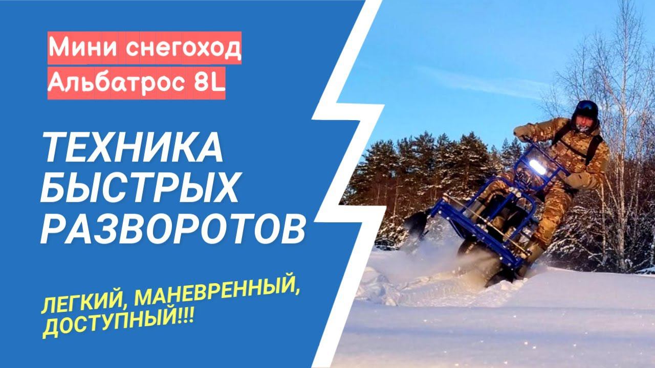 Мини снегоход Альбатрос 8L, быстрые развороты на нем.