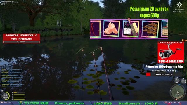 Поддержка донатом https://new.donatepay.ru/@1032463 Альтернативный донат https://www.donationalerts.com/r/kalyamba11 5536913964533059 карта Тинькоф Если стрим лагает,смотри стрим на трово https://trovo.live/s/Kalyamba_na_Ribalke Тг https://t.me/kalyamba_na_ribalke Мой ВК - https://vk.com/kalyantv НИК в игре kalyan11 НАШ ДС https://discord.gg/4ZzSQkQtsK Заказ водоема на 1 час - 500р ( весь стрим 2500р ) Модерка на канале 1300р ( каждая следующая на 100р больше) ✅Призы в рулетке "ЗОЛОТАЯ" 500р ✔ ЗОЛОТО ✔ ПРЕМ ✔ КАТУШКИ РАПТОР 40, ВЕНГИ, ТАЙГА, СИЛЬВЕР 80, И другие ✔ ПАЛКИ ПИЛКЕРНАЯ, ДОНКА МОРСКИЕ, ✔ РОД ПОД, СТУЛЬЯ ✅Призы в рулетке СТАНДАРТ : 100р ✔ катушкИ РАПТОР 40, ВЕНГИ, ТАЙГА, СИЛЬВЕР 80, И другие ✔ катушки 60 для медного ( ЭВИИ, НАТОРЫ, ГОЛДА, и тд) ✔ ПИЛКЕРНОЕ УДИЛИЩЕ КОРОЛЕВА ОКЕАНА ✔ Морское Донное удилище ✔ прем ( 3, 7, 30 дней) ✔ золото ( 1, 3, 5, 10, 20 ,50) ✔ билет на море ( 1, 3, 5 дней) ✔ голд наживка и др. ✅Призы в рулетке "СТАРТОВАЯ" 50р ✔ катушка Венга ✔ катушка "silver80" ✔ катушка "БЕЛЫЙ КАЛИБР" ✔ катушка "Черный калибр" ✔ катушка "Протон" ✔ катушка "Нарга 6000" ✔ Набор Фидерист и спинингист ✔ Карповик Фортуна ✔ фидерные удилища ✔ прем, золото, алкашка, наживки и тд P.s Рулетка это не казино, а награда за поддержку стримера. Вечный ТОП ПОДДЕРЖКИ (10.06.2025) 1. Леха сварной 214 572 2. Dimon_pokemonchik 127 034 3. Skreb79 103 061 4. Interceptor 96 230 5. FishRus86 82 500