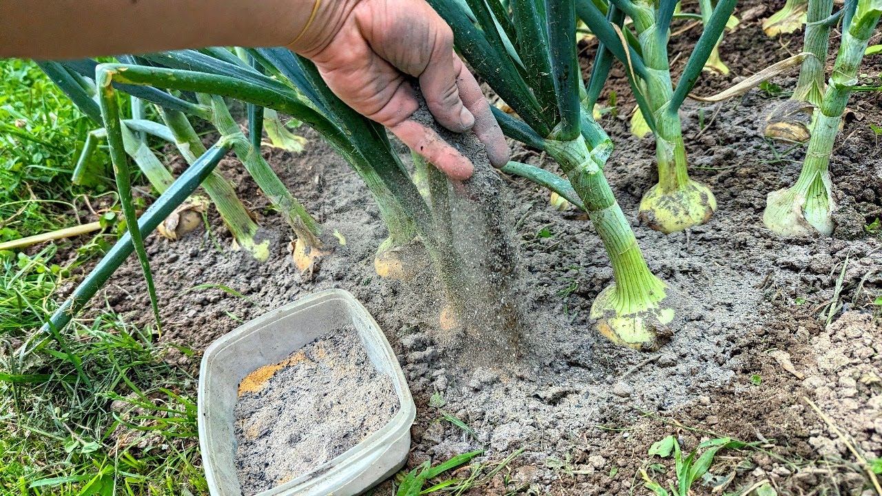Не спешите копать лук. Опудрите головки такой смесью они станут намного крупнее и гнили не будет.