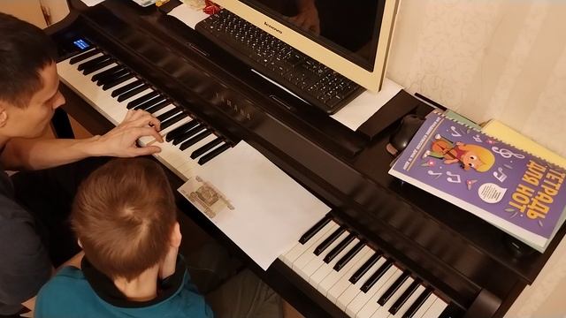 Гамма До мажор левой и правой рукой отдельно и двумя руками. И на две октавы. Пробую научиться.