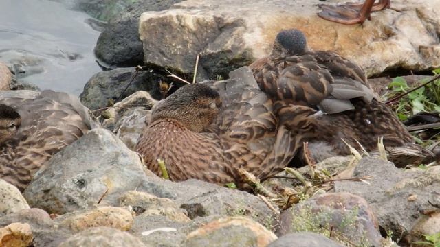 Утята с пруда перебрались на речку
