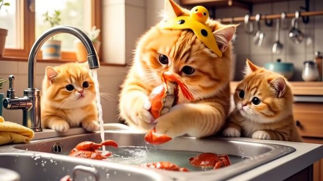 Mama Cat's Fancy Grilled Crab - The Playful Kittens Enjoying Themselves