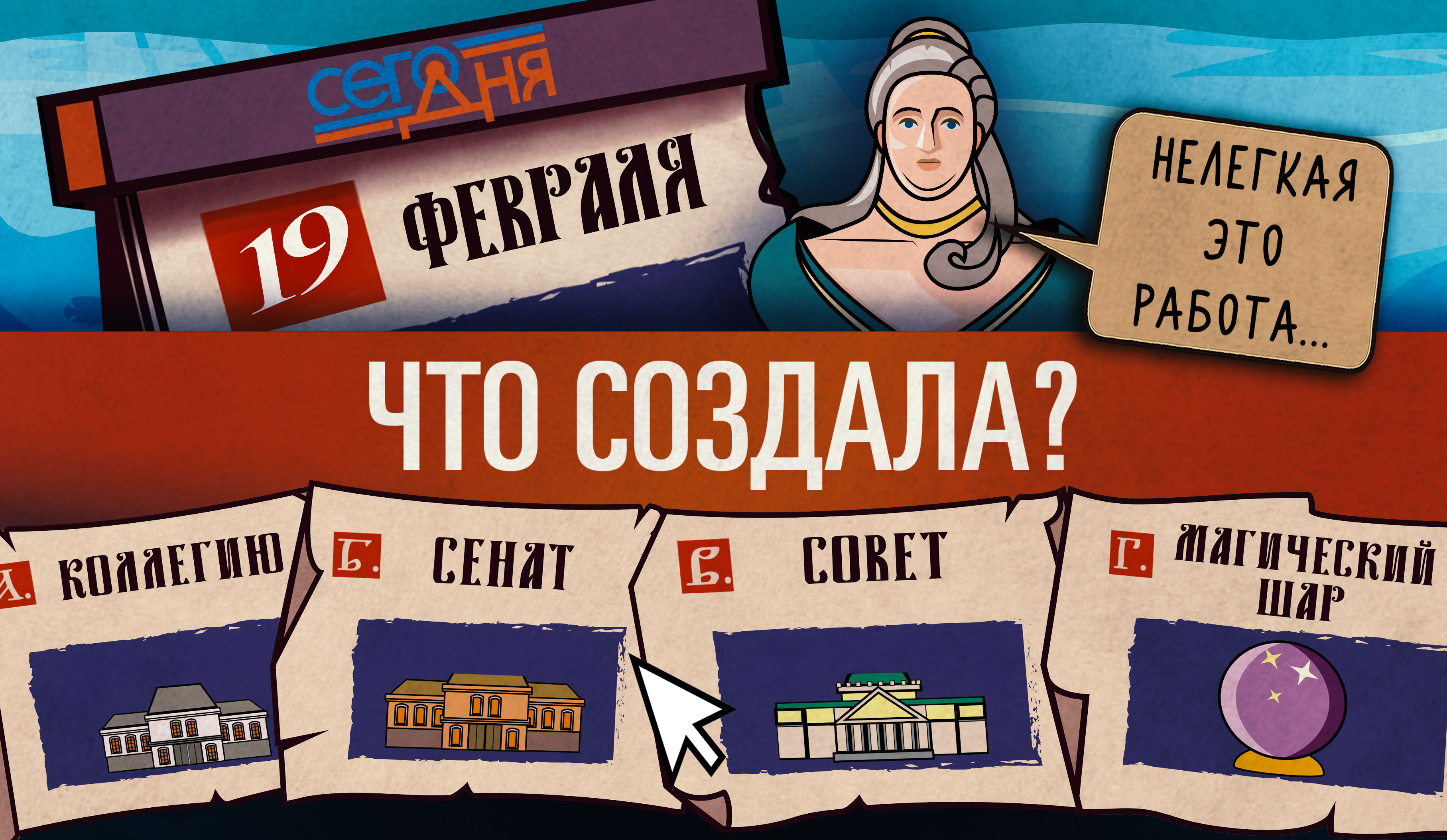 Всемирный день китов! Что создала императрица Екатерина I для упрощения управления государством? Отгадай, что случилось «Сего дня»!