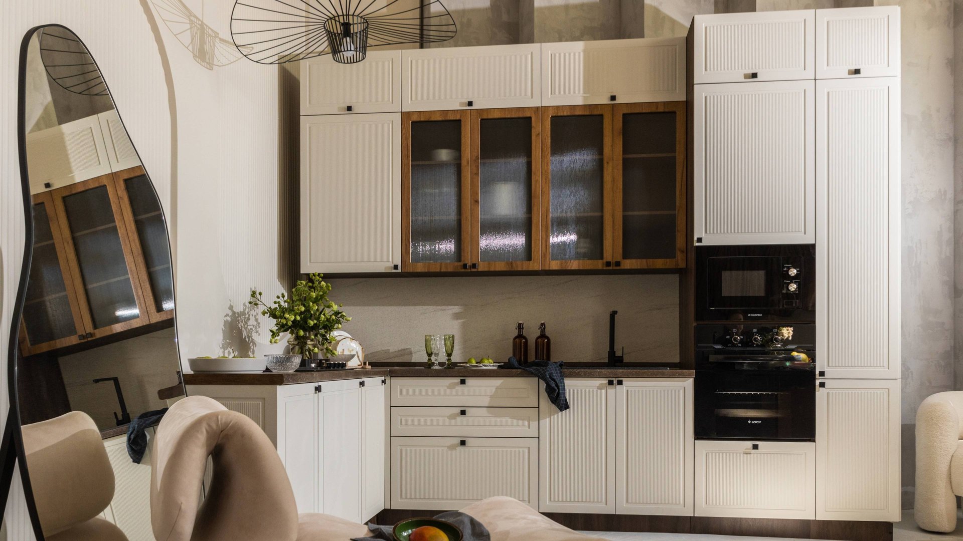 Главная особенность новой кухонной линейки «Моцарт» - это потрясающий рельеф. Вертикальные полосы фрезеровки буквально повторяют ритм струн клавесина, и задают последовательность и настроение всему интерьеру. «Моцарт» – это наша интерпретация популярной современной фрезеровки, которую мы адаптировали под набирающий обороты стиль «Old Money». Повторяющиеся линии и острые углы под разным освещением за счет игры света сглаживаются, либо становятся подчеркнуто-выразительными. Смотрится просто шикарно! А вертикальное расположение полос ассоциируется с колоннами, придавая интерьеру нотку величия. Посмотреть на сайте: https://московскаямебель.рф/kukhni/kukhnya-motcart