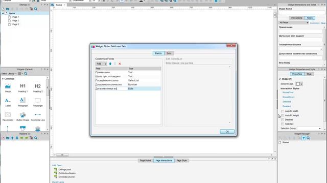 Заметки и примечания (notes) в Axure 7